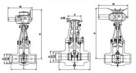 Z961Y-P54100V, Z961Y-P54140V, Z961Y-P54170V high-temperature and high-pressure electric power station gate valves: electric, butt welding connection, open-rod wedge rigid single gate, valve seat sealing surface material for Cr-Mo-V steel surfacing welding Co-Cr-W alloy, working pressure 10MPa ~ 17MPa, valve body material for chromium-Mo-V steel high-temperature and high-pressure power station gate valves.