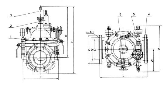 1、球閥2、導(dǎo)閥3、流量調(diào)節(jié)閥4、主閥5、壓力表6、針閥