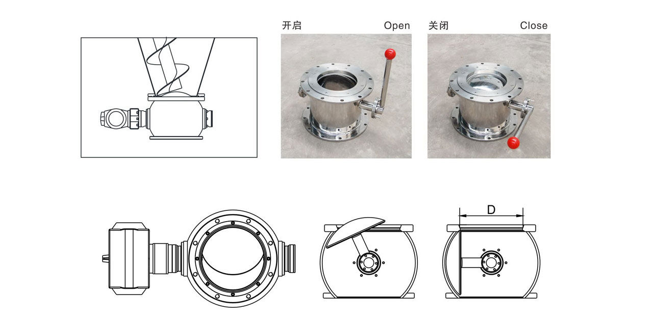 高溫出料閥可替代梅花閥、蝶閥、翻板閥安裝于雙螺旋錐形混合機底部,
